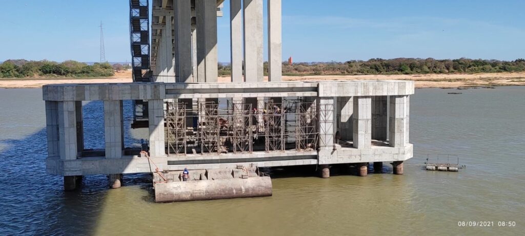 A CONCEF atinge marco importante de 90% com a implantação dos dolfins de proteção aos pilares do vão navegável sobre o Rio São Francisco, garantindo a proteção de toda sua estrutura.