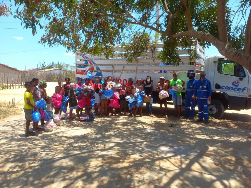 No início do mês de outubro a Concessionária Estrada do Feijão realizou ação beneficente e solidária em comemoração ao dia das crianças. Na oportunidade, foram doados cestas básicas e brinquedos para as famílias e crianças das comunidades do Angico (BA-160) e Céu azul (BA-052).