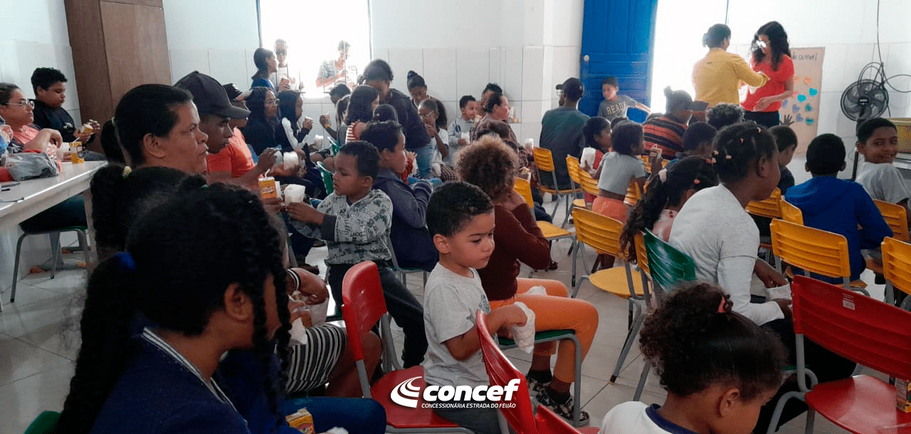 A Concessionária Estrada do Feijão promoveu uma edição especial do CineCONCEF em comemoração ao Dia dos Pais, na Escola Municipal Ramiro Pinto, localizada no Povoado Largo, Distrito de Piritiba, na BA-052. Com a temática “Relação pais e filhos”, a ação trouxe a exibição de dois desenhos que exploram, de forma reflexiva, as relações entre os pais e seus pequenos.