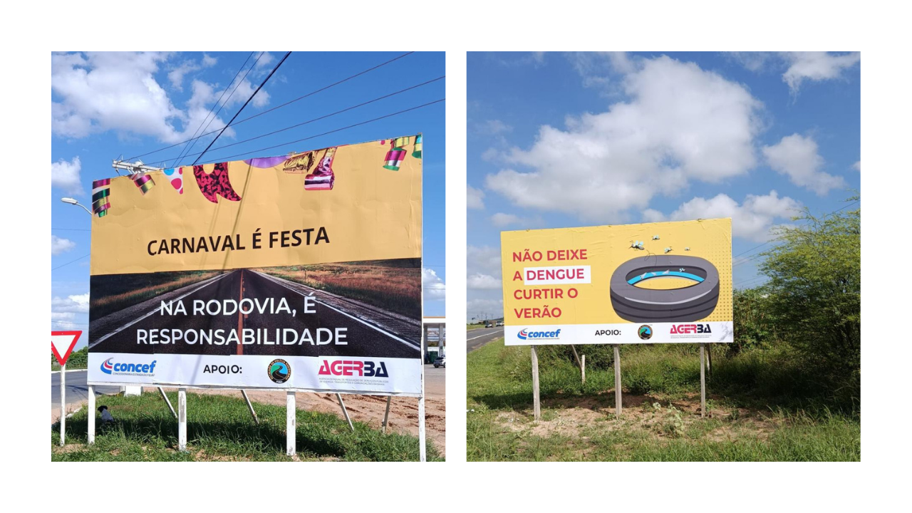 Além da segurança nas estradas, a CONCEF também chama a atenção para o combate à dengue, que costuma registrar aumento de casos durante o verão. Em Irecê, outro outdoor reforça a necessidade de eliminar focos do mosquito Aedes aegypti, com a frase “Não deixe a dengue curtir o verão”. A ação destaca a importância de manter recipientes que acumulam água sempre limpos e cobertos, evitando a proliferação do mosquito transmissor da doença.