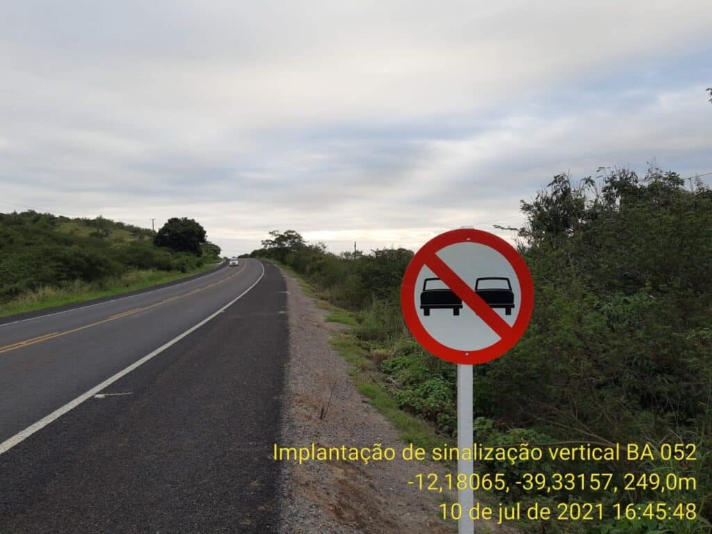 No início do 2° semestre de 2021 a Concessionária Estrada do Feijão realizou implantação de sinalização vertical ao longo da BA-052, no intuito de orientar e alertar os usuários que trafegam ao longo da rodovia.