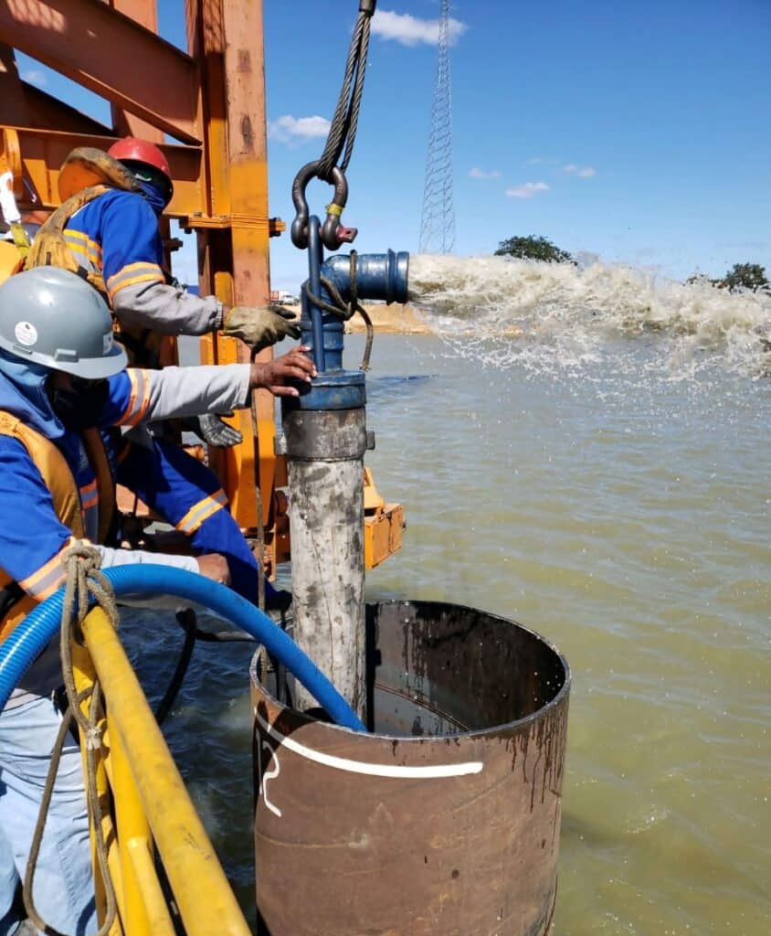 A Nova Ponte interligará os municípios de Xique-Xique e Barra, no oeste da Bahia, atendendo aos anseios da população baiana que buscava mais segurança e conforto na travessia sobre o Rio São Francisco. As atividades estão concentradas nas imediações do rio e, seguindo as atividades, a CONCEF expõe marcas importantes, apresentando mais de 25% de conclusão em toda a obra. A parte de fundações e infraestrutura que já supera os 60% de conclusão, inicializa a cravação de estacas metálicas no trecho do balanço sucessivo, como mostra os registros a seguir.