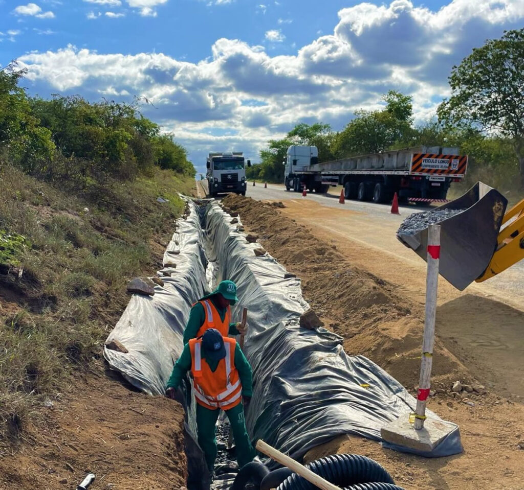 A fim de melhorar a drenagem e o escoamento das águas que podem afetar o pavimento nesses tempos chuvosos, as equipes da Concessionária Estrada do Feijão estão trabalhando na implantação de um dreno, na região de Baixa Grande, no km 124.