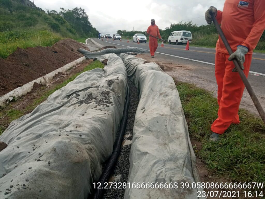 Em alguns períodos do ano ocorre uma grande concentração e acúmulo de água das chuvas nos lençóis freáticos e à medida que o nível de água se eleva pode haver o comprometimento do pavimento e/ou a superfície estradal, tornando-se um dos fatores mais críticos de instabilidade dos taludes. Como forma de prevenção, a CONCEF realiza implantação de dreno profundo horizontal nas mediações do km 4 na BA-052 e tem como principal objetivo a captação e condução das águas do lençol freático e águas provenientes de infiltração de águas pluviais.