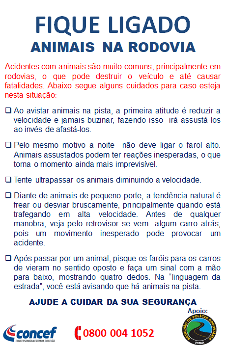 Animais invadindo as pistas são comuns em quase todo lugar do Brasil e a CONCEF atua para mitigar esse risco.