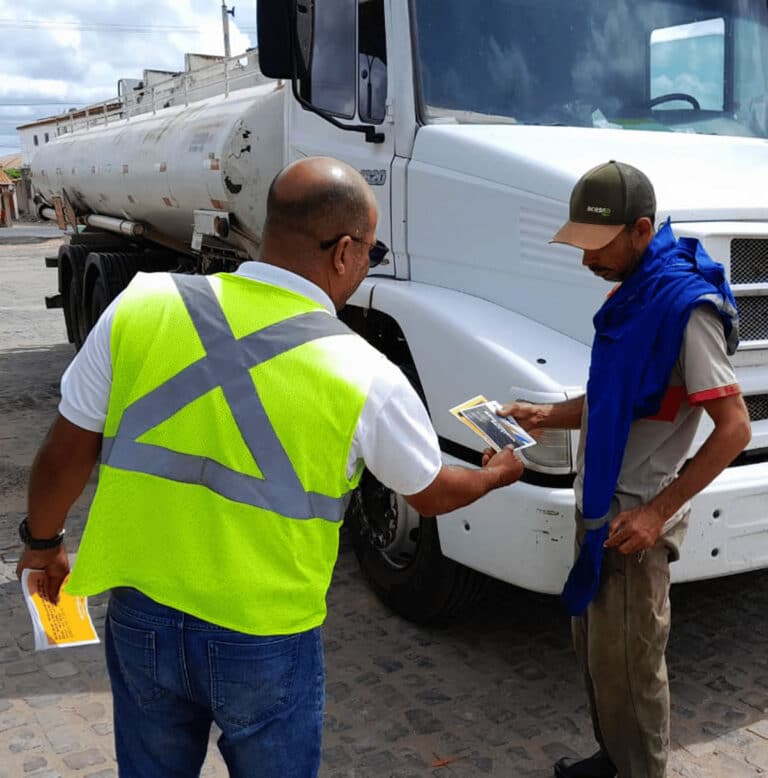 Ação faz parte da campanha de redução de acidentes As equipes da Concessionária Estrada do Feijão estão conversando...