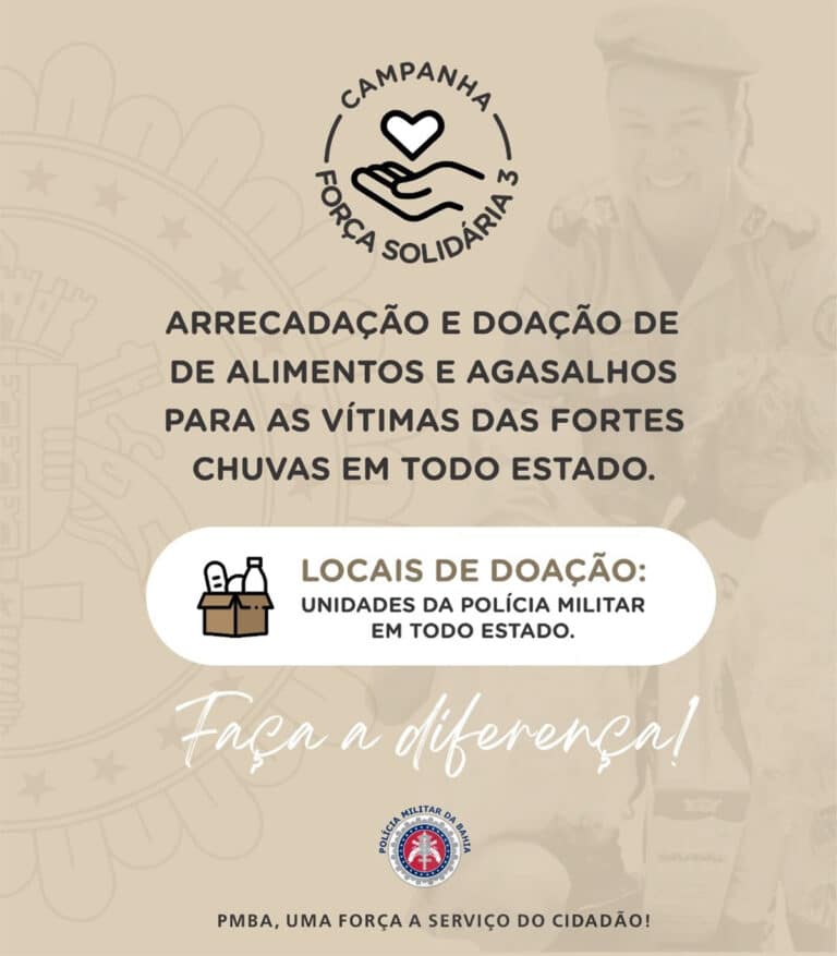 Conteúdo arrecadado será doado para famílias atingidas pelas chuvas A Polícia Militar da Bahia lançou a Campanha FORÇA...