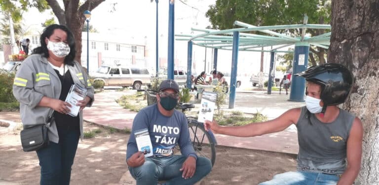 Equipe da CONCEF reforça o uso do álcool em gel durante entrega de boletim informativo