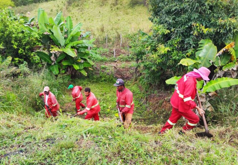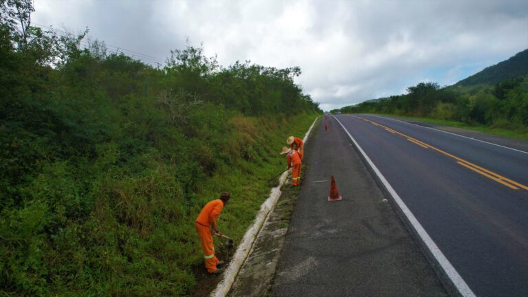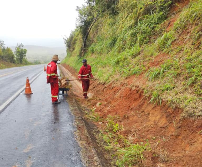Ação melhora o aspecto visual da rodovia e inibe problemas nas drenagens da Estrada do Feijão Na região...