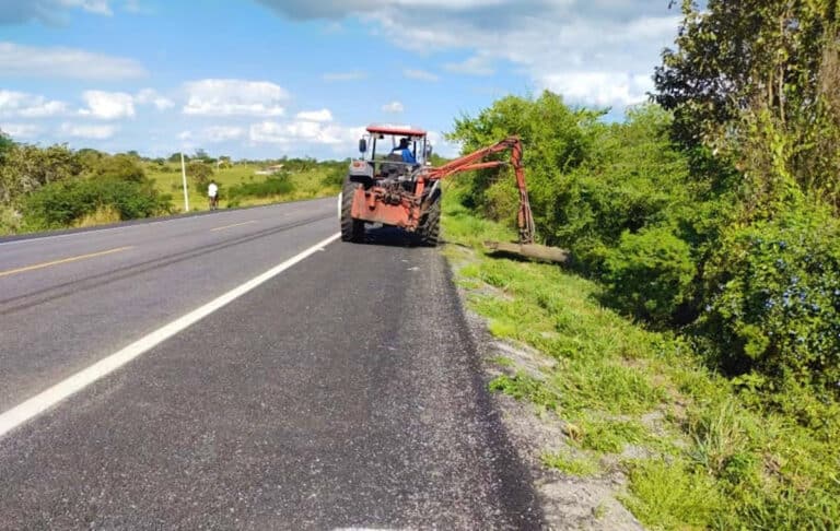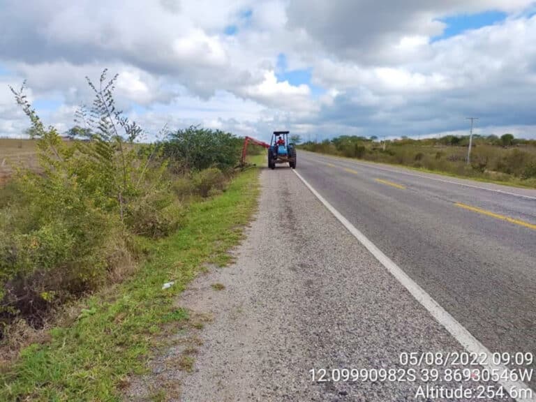 Roçadeira mecânica realiza capina na vegetação lindeira entre Baixa Grande e Mundo Novo