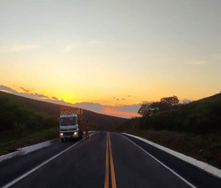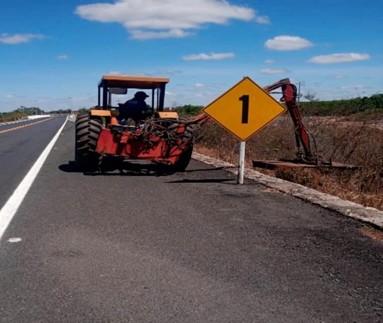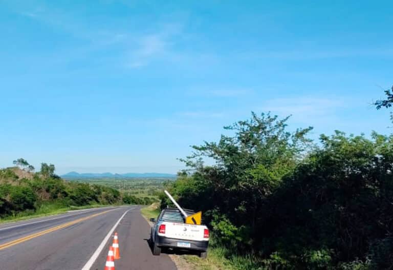 Operação de reaprumo e reinstalação de placas de sinalização no Sistema Rodoviário da BA-052