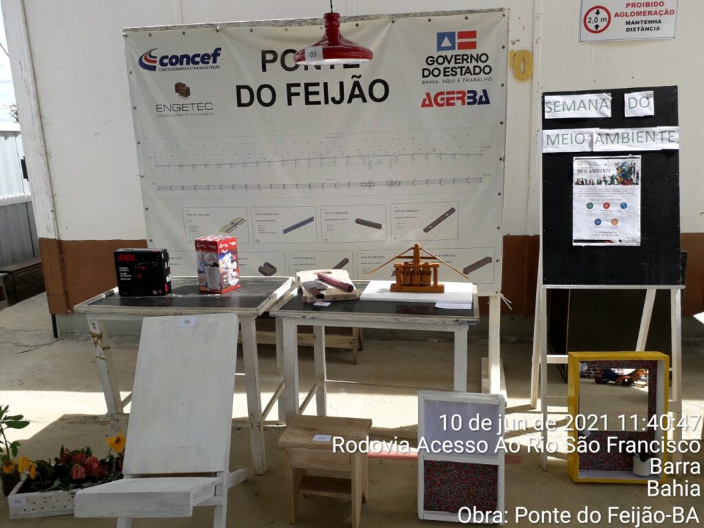 Foram confeccionados objetos com sucata de madeira, plástico, metal, garrafas e outros tipos de sucata, além da participação de um artista local, que apresentou a sua arte feita de “sucata” de aço, pneus e madeira.